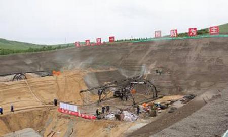 張承高速千松壩隧道水平旋噴臺車洞外施工