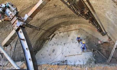 張承高速千松壩隧道水平旋噴臺車洞內施工
